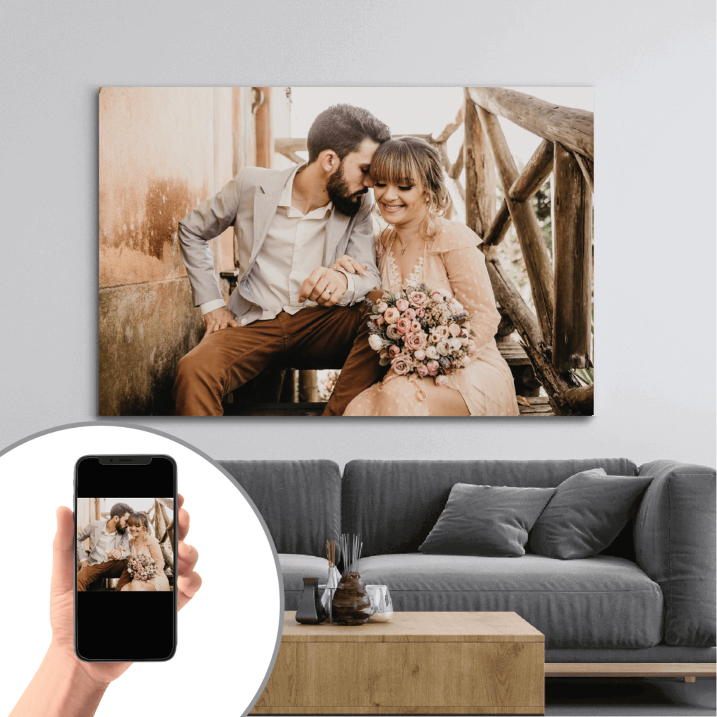 Alege forma dorită apoi dimensiunea tabloului și vezi în timp real cum arată poza ta pe un tablou canvas