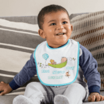 Îți propunem o bavețică personalizată cu un design tematic, alegerea perfectă deoarece descrie foarte bine această perioadă minunată a celui mic.