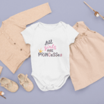Pentru că toate fetițele sunt prințese inclusiv micuța ta, accesorizează-i ținuta cu un body plin de personalitate! Sau, ai putea să îl oferi drept cadou fiind un articol vestimentare foarte util și necesar celor mici.