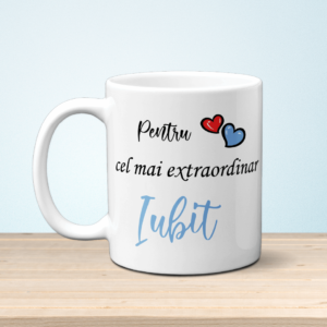 Poți alege ca design-ul să fie pe ambele părți ale cănii sau pe una dintre părți poți încărca o poză preferată sau să scrii propriul mesaj.