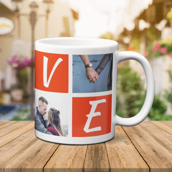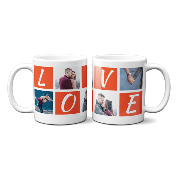 Cană Personalizată cu 4 poze și mesaj: „LOVE”