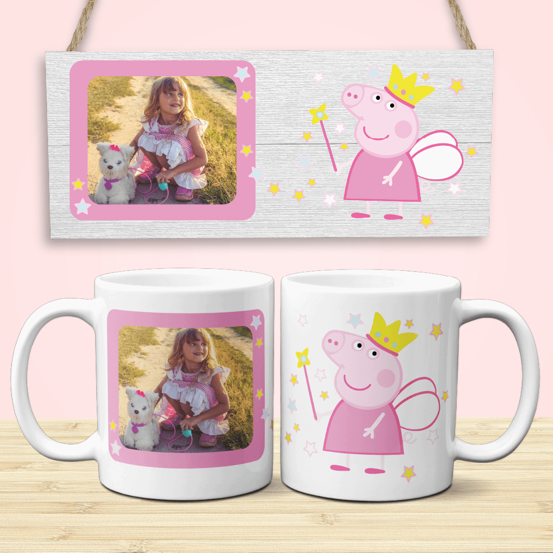 Oferă-i în dar micuței tale prințese o cană personalizată Peppa Pig, cel mai îndrăgi personaj. Decorează cana și cu poza ei, alături de Peppa și îți garantăm că va fi cadoul perfect!