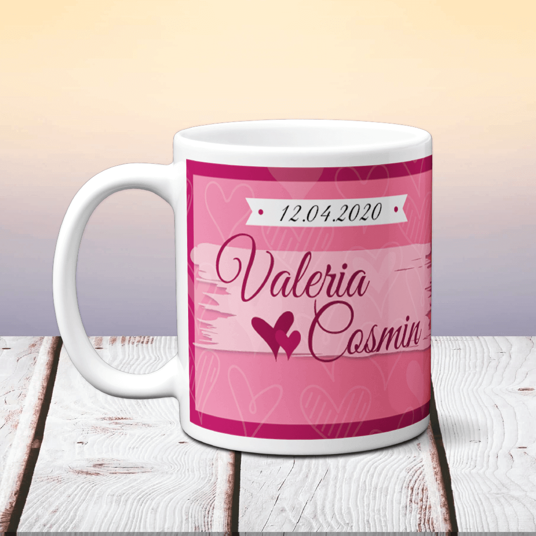 Cană Personalizată cu o poză și nume – „Heart Vibes”