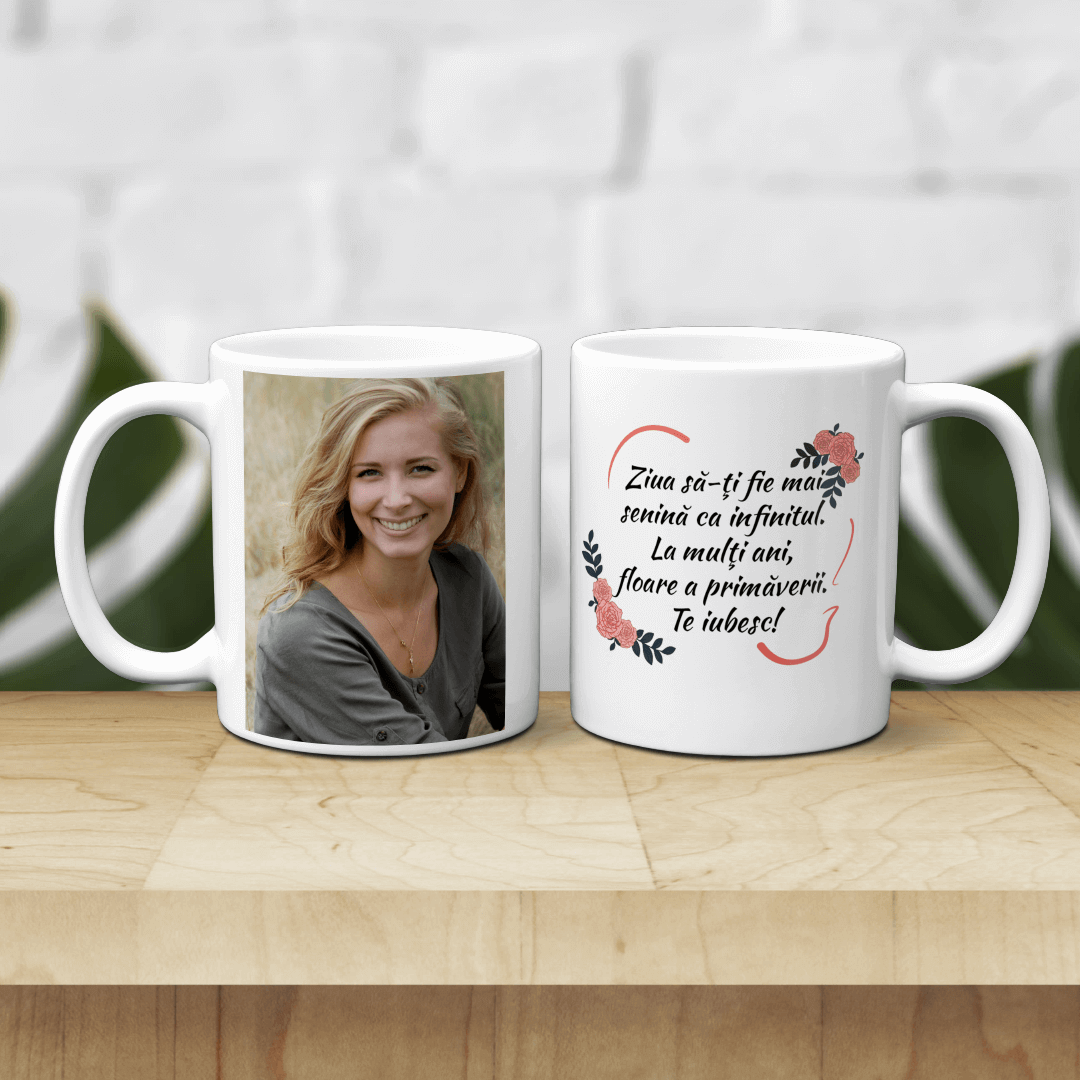 1 recenzie pentru Cană Personalizată cu o poză și text floral – Model 1