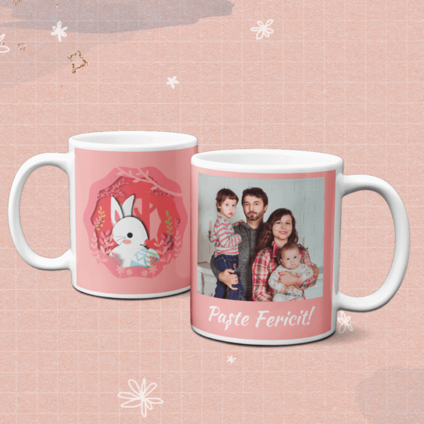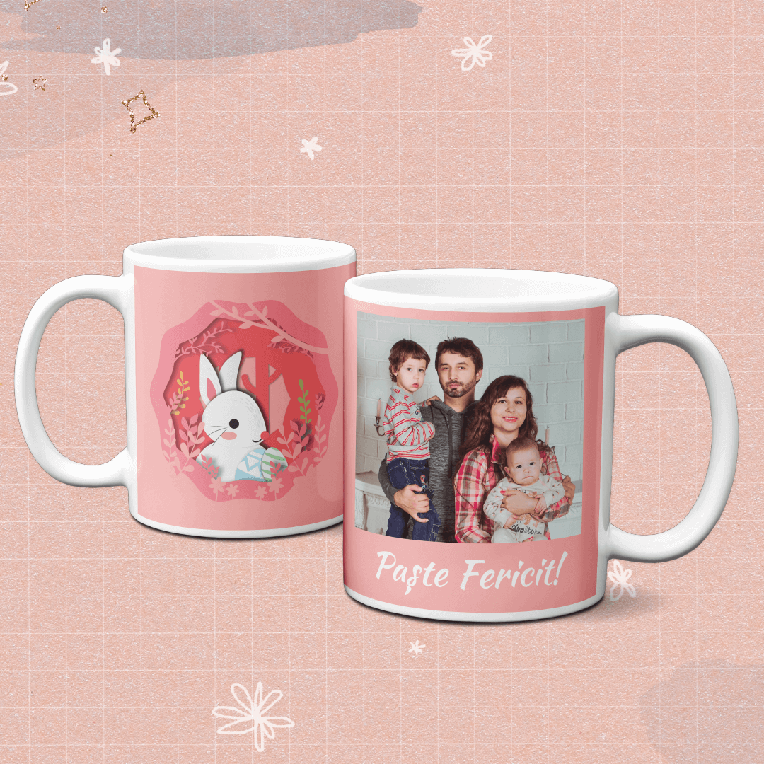 Fii tu iepuraș pentru cei dragi și alege un cadou unic dar util: o cană personalizată, tematică. Decoreaz-o cu poza preferată și cu o urare.