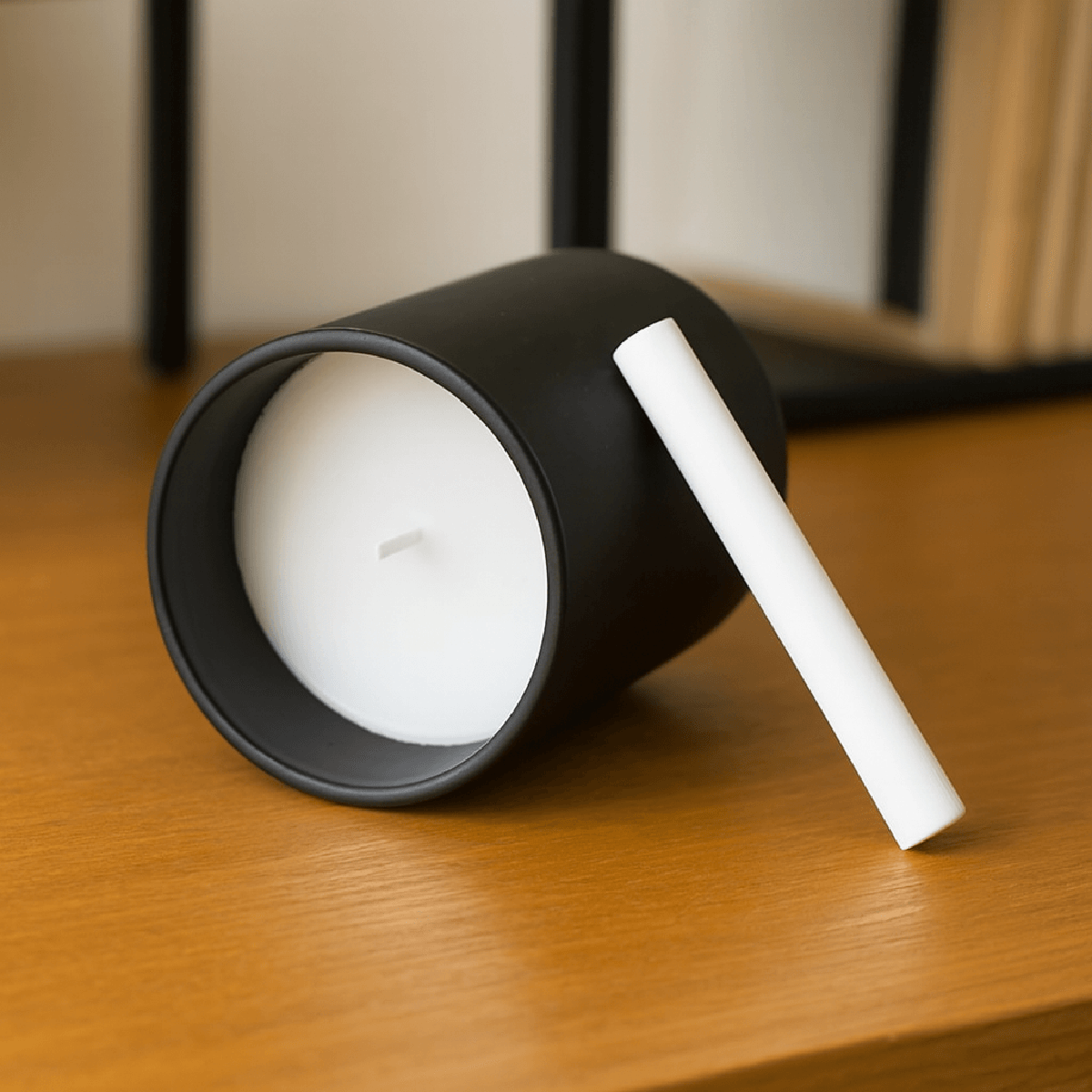 Vine într-un recipient elegant, negru mat, cu suprafață tip tablă de scris, perfectă pentru personalizare. În cutie găsești și o cretă albă, cu care poți scrie direct pe lumânare orice mesaj vrei: „Te iubesc”, „Nu uita de meeting”, „Bună dimineața” sau „Pregătești tu cina?”.