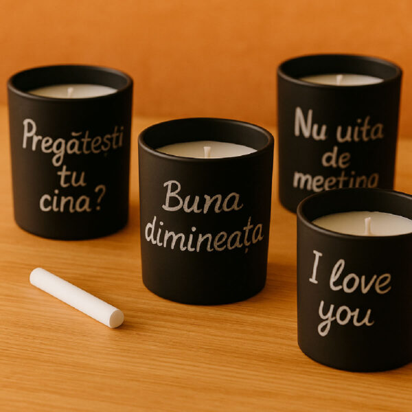 Când vrei să schimbi mesajul, pur și simplu ștergi cu o lavetă uscată sau ușor umedă și scrii din nou. Astfel, lumânarea devine un suport reutilizabil de comunicare zilnică între tine și cei dragi.
