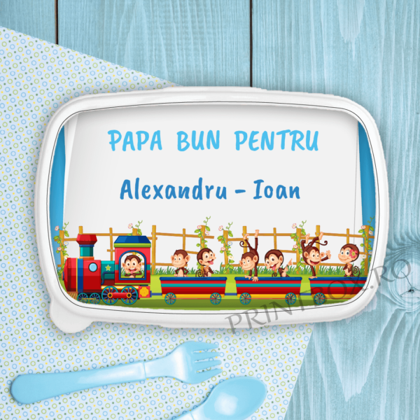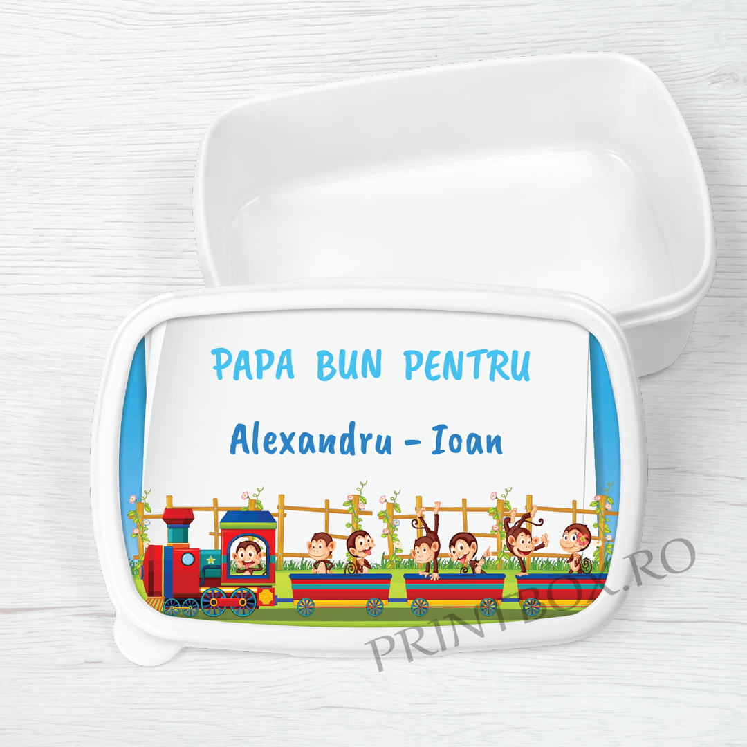 Lunch Box-ul poate fi personalizat cu nume și mesaj.