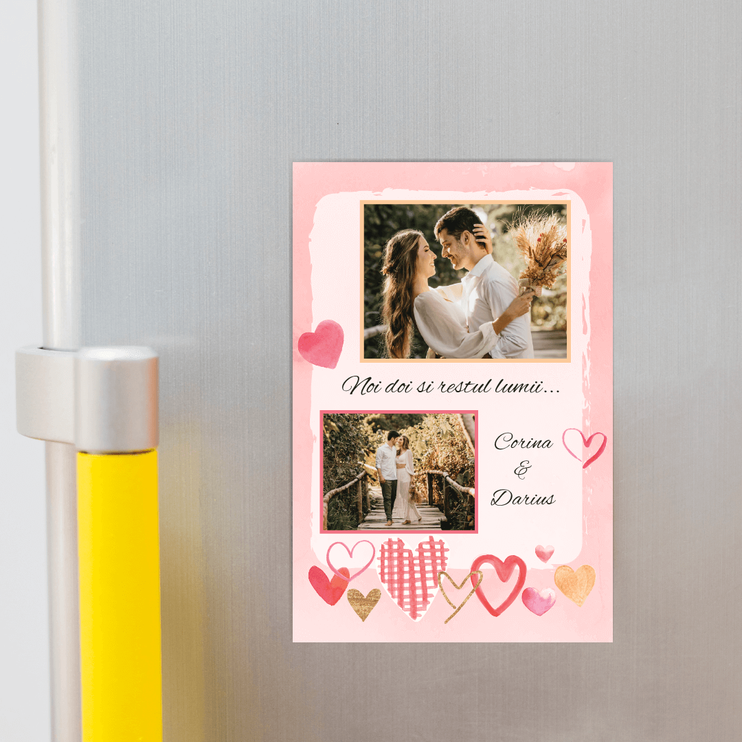 Noi îți punem la dispoziție o serie de magneți calitativi, pe care îi poți personaliza cu poză/poze/text, în funcție de modelul ales. Festiv, am pregătit un magnet tematic, învăluit în dragoste, cadoul perfect pentru Ziua Îndrăgostiților și nu numai. Tu cui l-ai dărui?