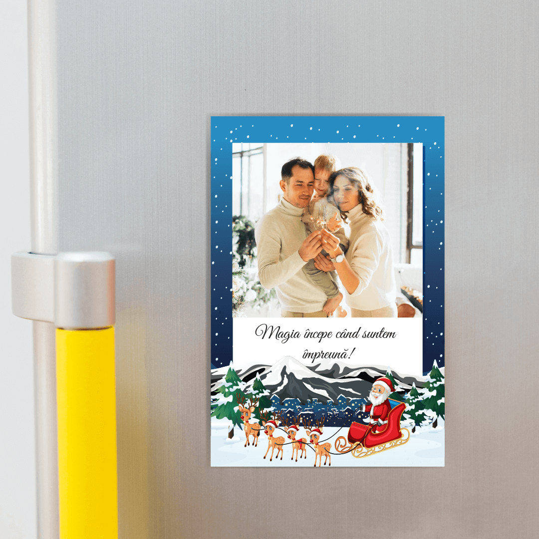 Noi îți punem la dispoziție o serie de magneți calitativi, pe care îi poți personaliza cu poză/poze/text, în funcție de modelul ales. Festiv, am pregătit un magnet tematic, învăluit în sărbătoare. Tu cui l-ai dărui?