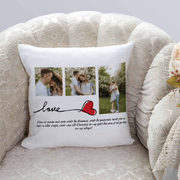 Pernă Personalizată cu 3 poze și mesaj – Love