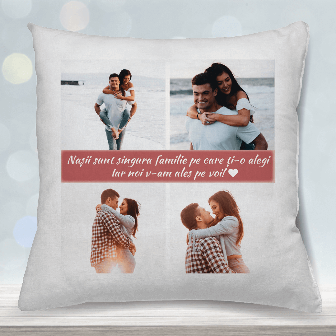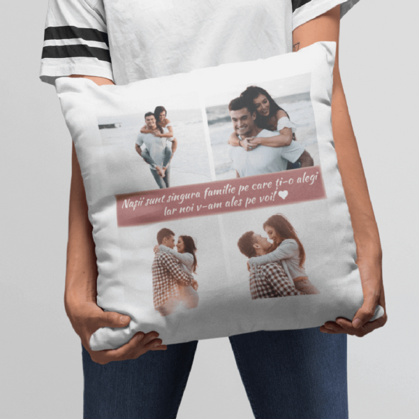 Pernă Personalizată cu 4 poze preferate și mesaj