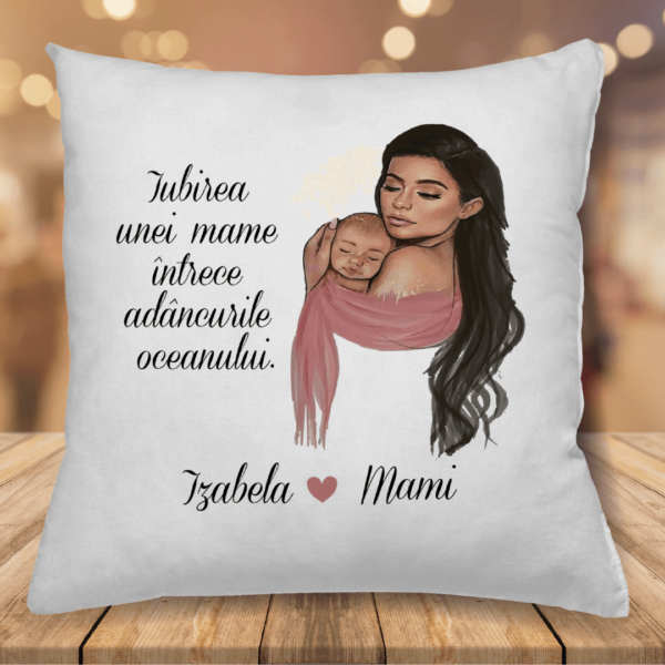 Pernă Personalizată cu nume și mesaj – Mother and Baby