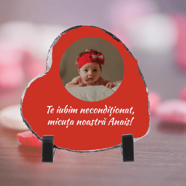 Piatră Ardezie Inimă Personalizată cu o poză și mesaj - fundal roșu Piatră Ardezie Inimă Personalizată cu o poză și mesaj - fundal roșu