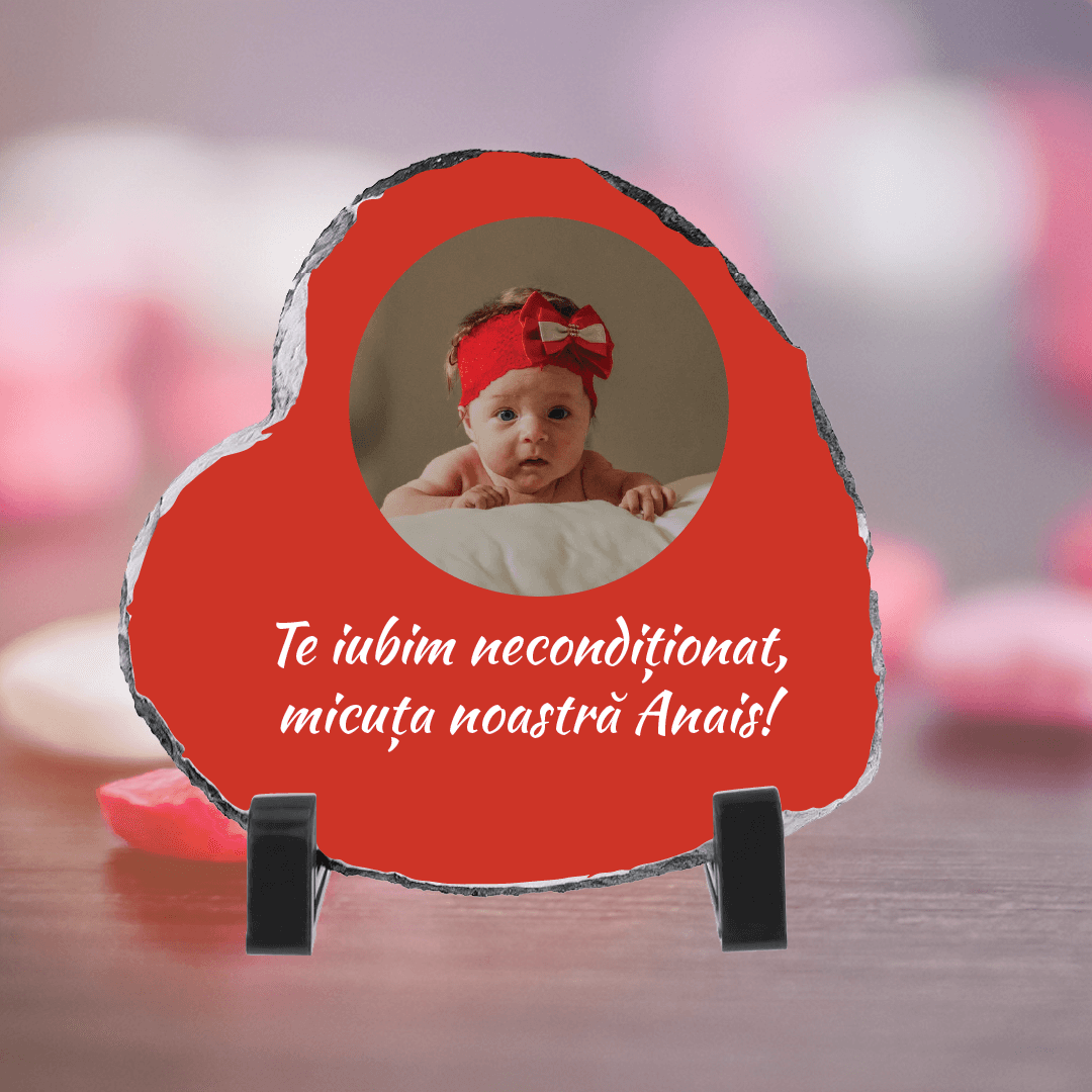 Ești în pană de idei și nu știi ce cadou să alegi? Ce spui de o Piatră Ardezie Inimă Personalizată cu poza preferată și un mesaj reprezentativ? Acest model este unul foarte versatil iar tu îl poți personaliza astfel încât să fie cadoul potrivit pentru oricine, indiferent de ocazie!