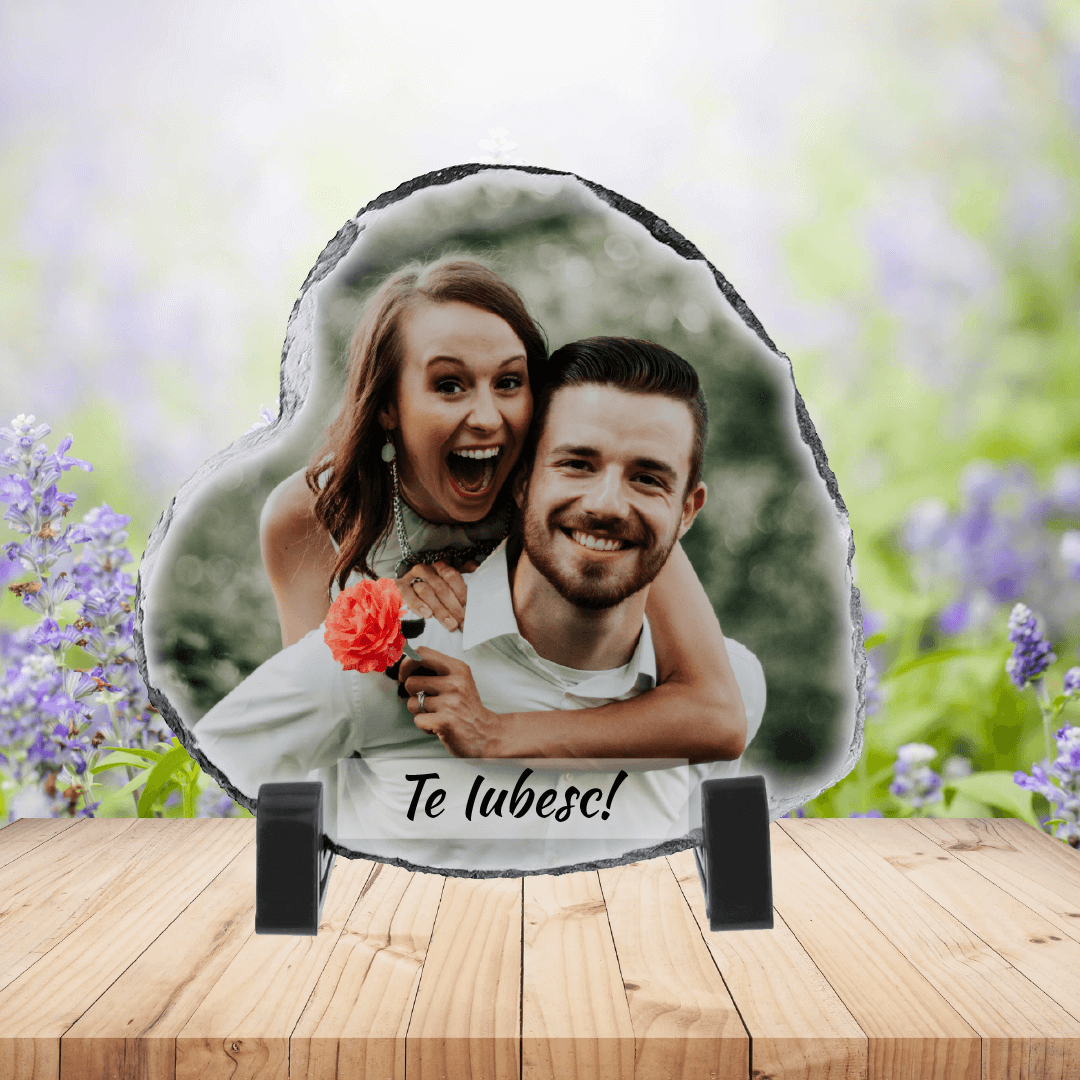 Cauți un cadou deosebit? Ce spui de această Piatră Ardezie Inimă personalizată cu poza și textul tău? Oferă cadouri inedite și în același timp amintiri de neuitat…