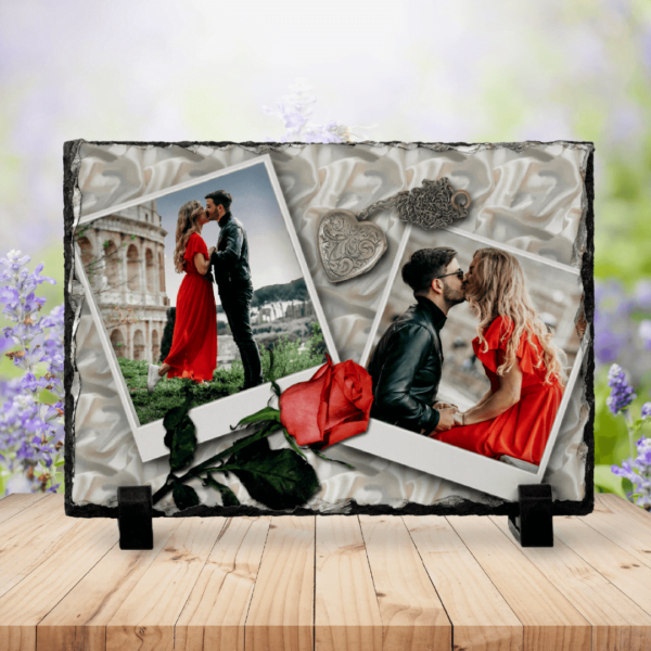 Piatră Ardezie Personalizată cu două poze model trandafir