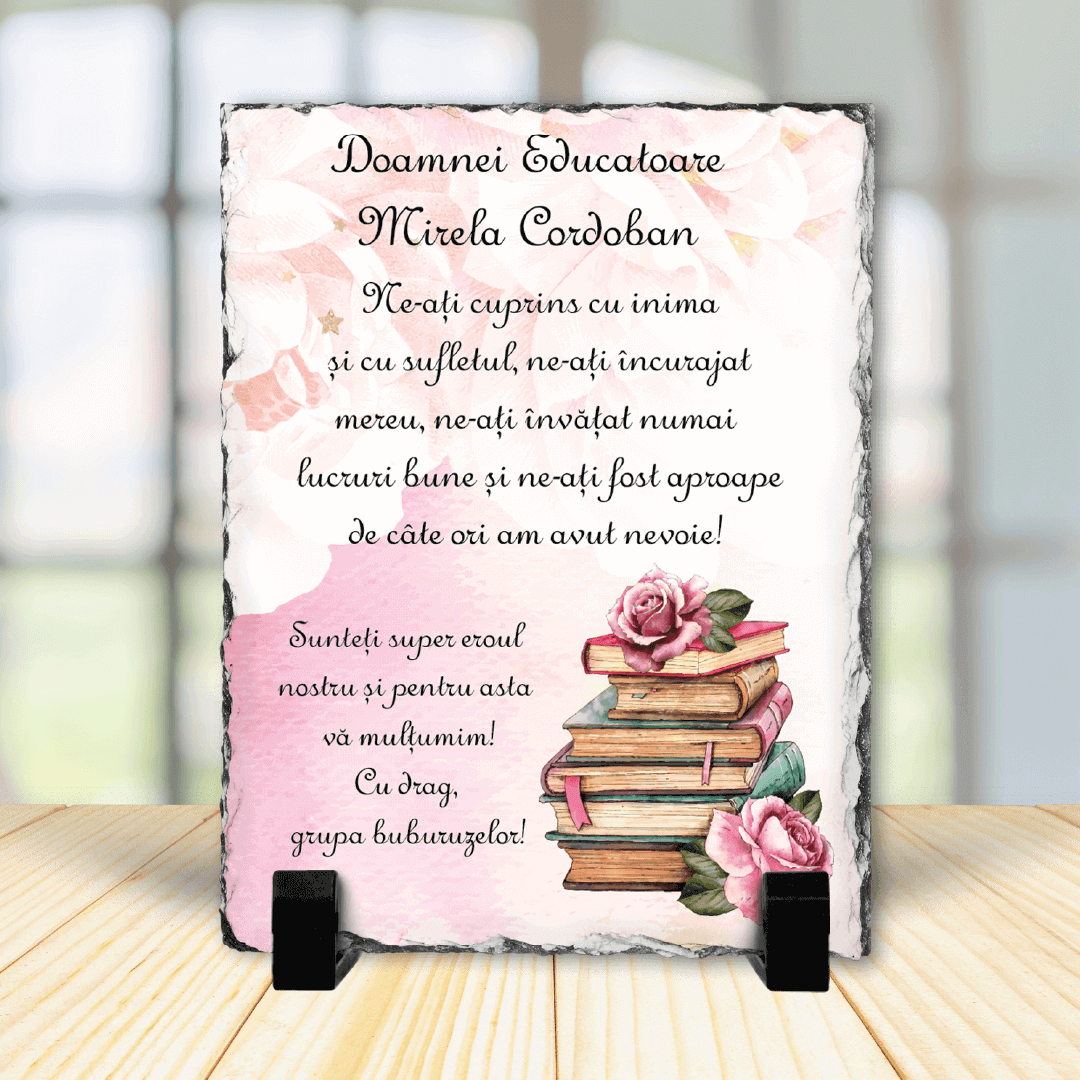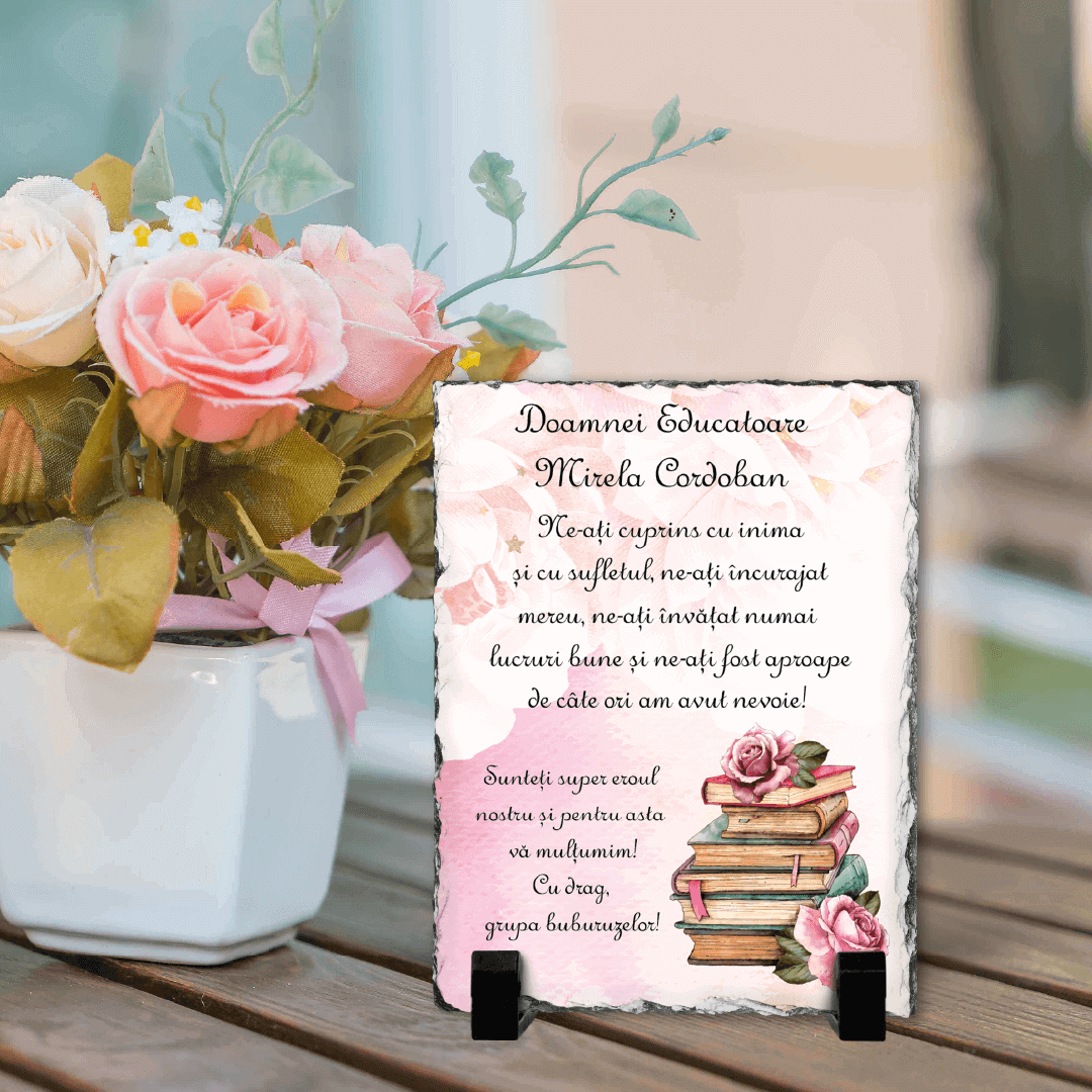 Piatră Ardezie Personalizată cu mesaj - Gânduri pentru Educatoare