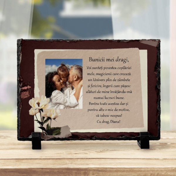 Piatră Ardezie Personalizată cu o poză și mesaj pentru bunici Piatră Ardezie Personalizată cu o poză și mesaj pentru bunici