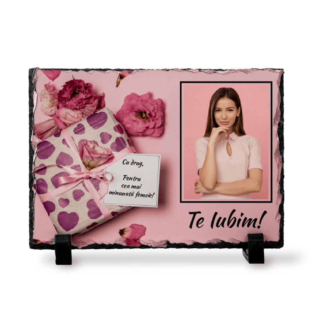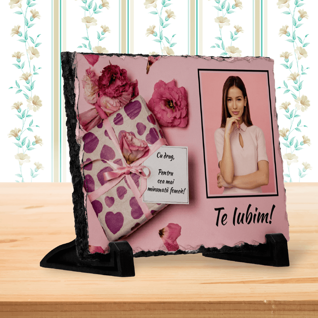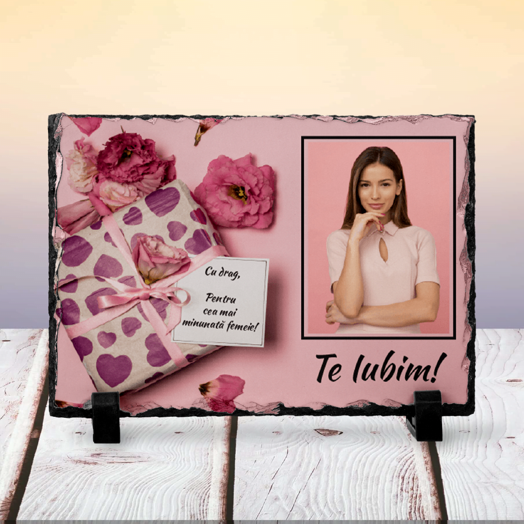 Piatră Ardezie Personalizată cu o poză și mesaj - "Pentru cea mai minunată femeie"