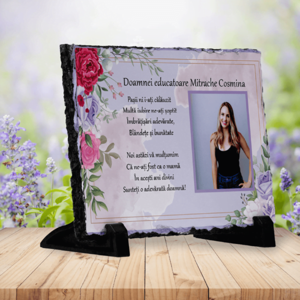 Piatră Ardezie Personalizată cu o poză și mesaj pentru doamna educatoare