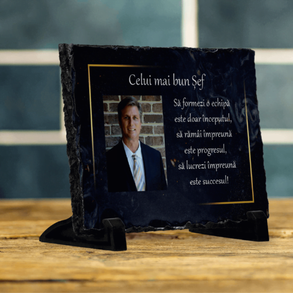 Piatră Ardezie Personalizată cu o poză și mesaj pentru șef Piatră Ardezie Personalizată cu o poză și mesaj pentru șef