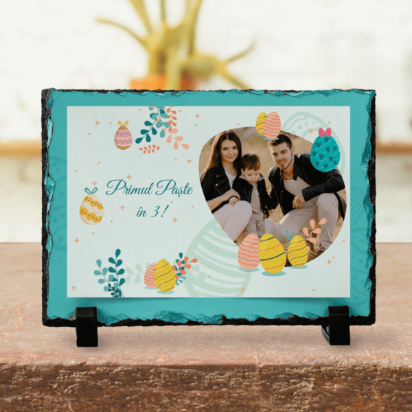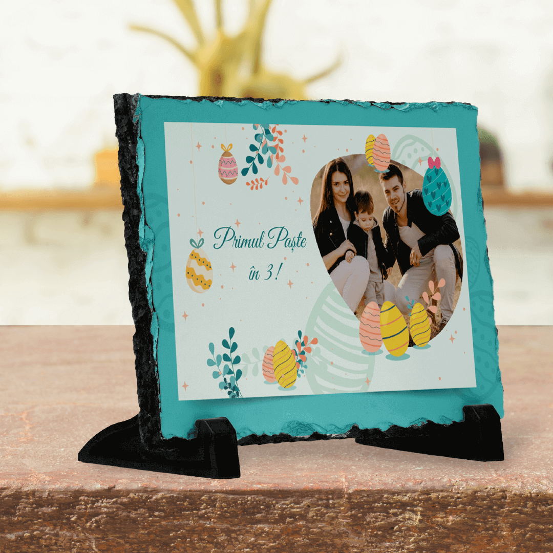 Piatră Ardezie Personalizată cu o poză și text - Primul Paște