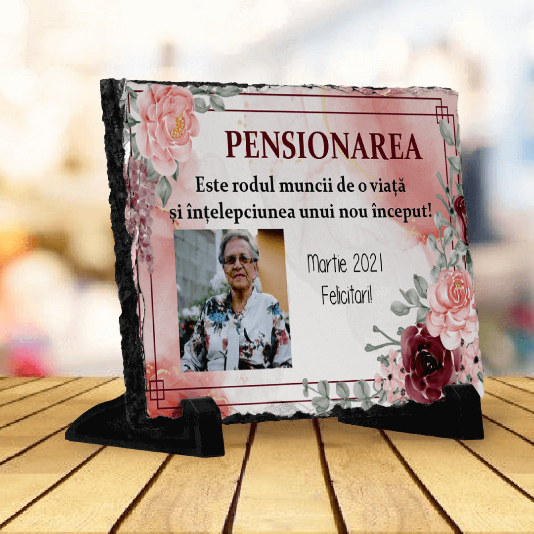 Piatră Ardezie Personalizată cu o poză și text – Simbol Pensionare
