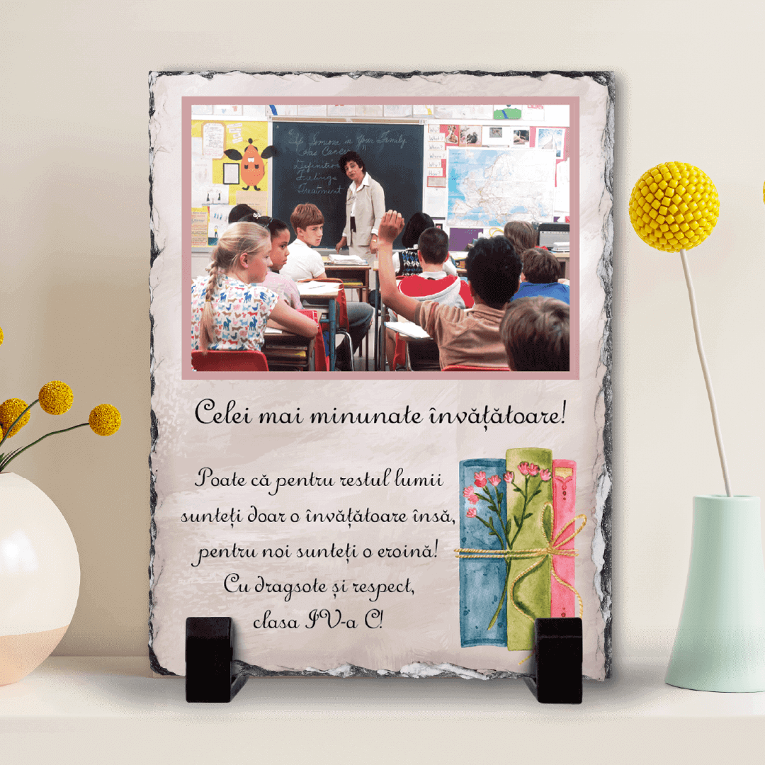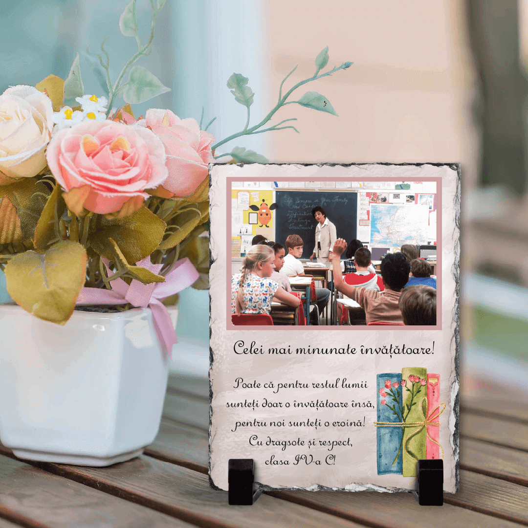 Piatră Ardezie Personalizată cu poză și mesaj – Doamnei învățătoare