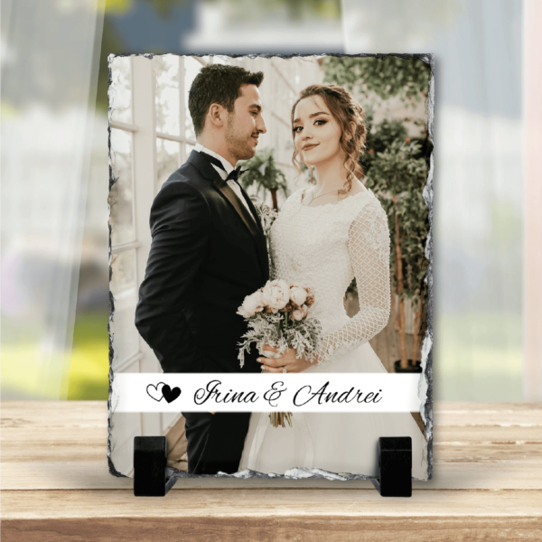 Piatra de ardezie poate fi personalizată cu o poză și nume/mesaj
