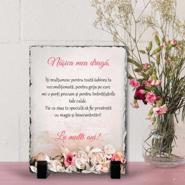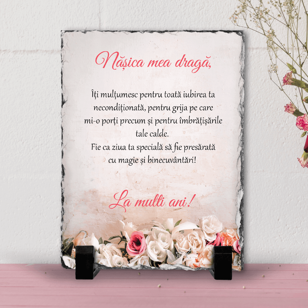 Piatră Ardezie Verticală Personalizată cu mesaj pentru Nașa Piatră Ardezie Verticală Personalizată cu mesaj pentru Nașa