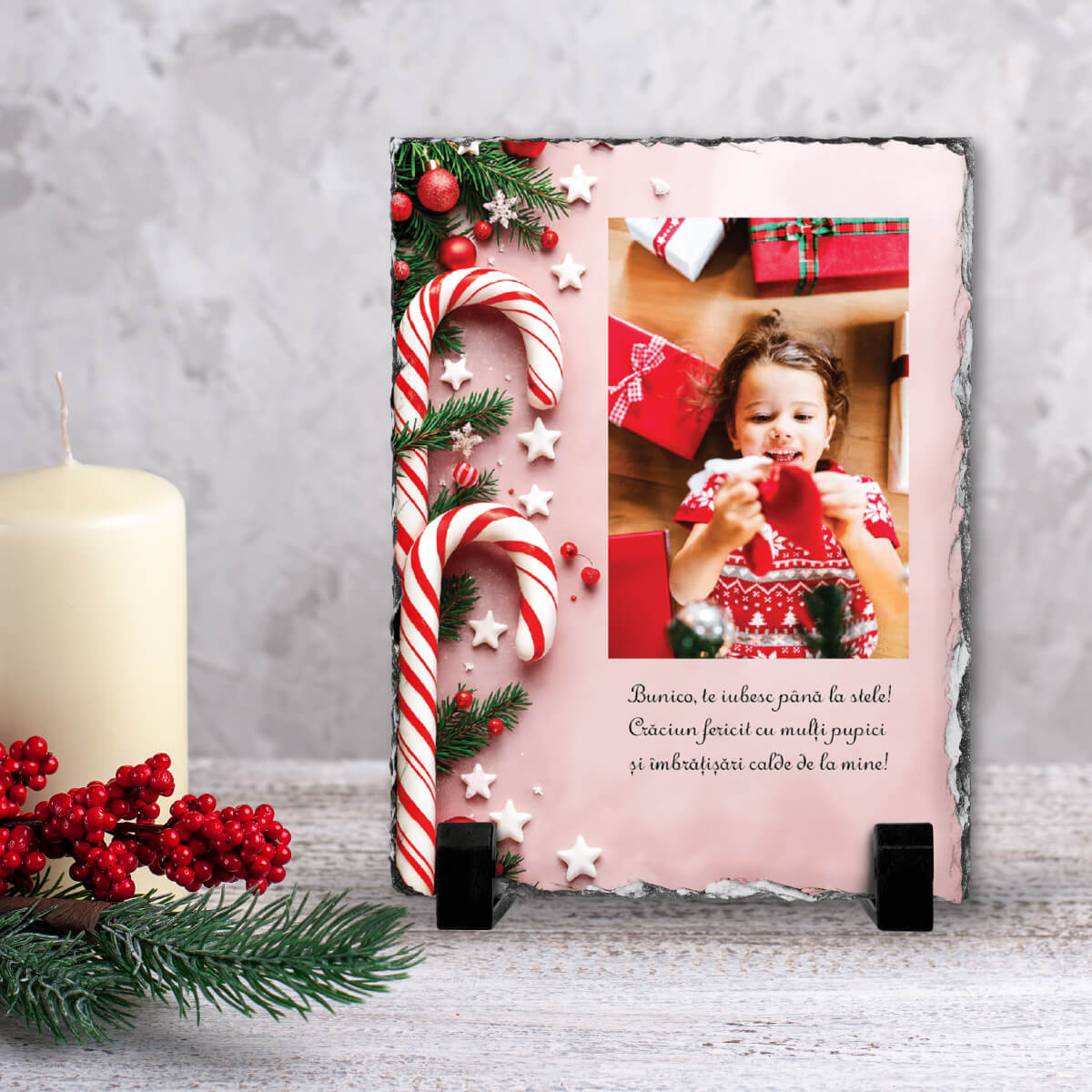 Încă nu ai găsit cadoul perfect pentru Crăciun? Te salvăm noi! Alege o piatră ardezie verticală personalizată cu poză și mesaj. Magia Sărbătorilor este în mâinile tale!