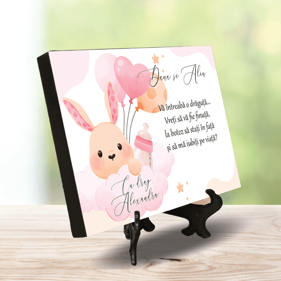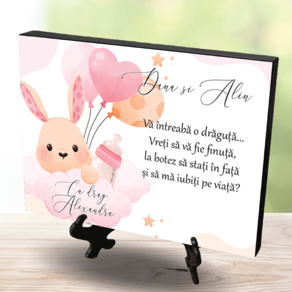Plachetă Foto Personalizată cu mesaj Cerere Nași -Baby Girl