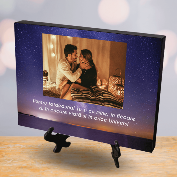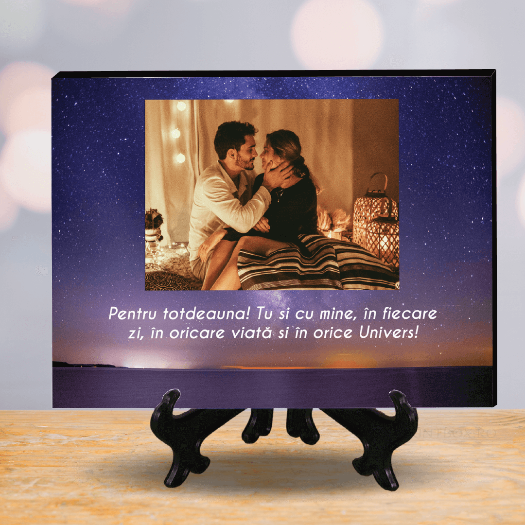 Dacă ești în căutarea unui cadou cu adevărat surprinzător, îți propunem o Plachetă Foto Personalizată cu fotografia preferată și un mesaj dorit de tine!