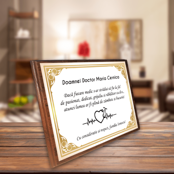 Plachetă Lemn Personalizată cu mesaj pentru Doctor