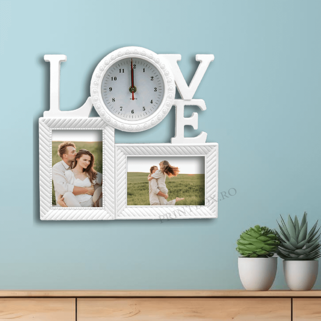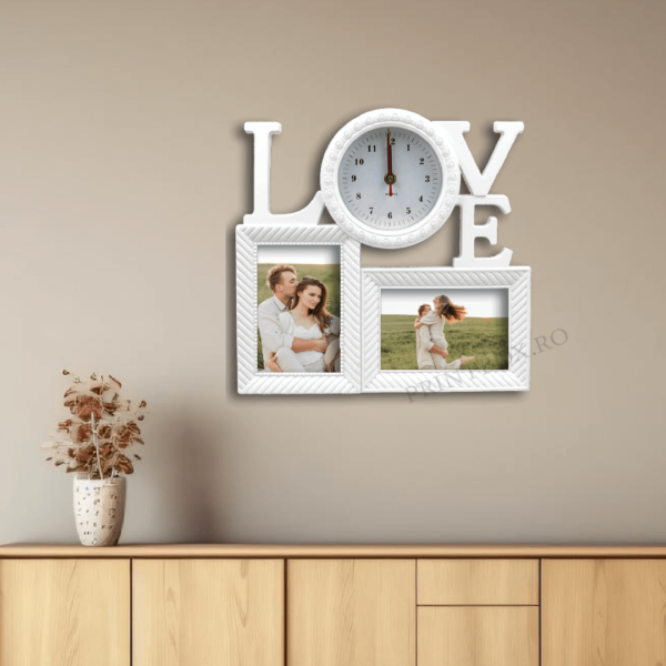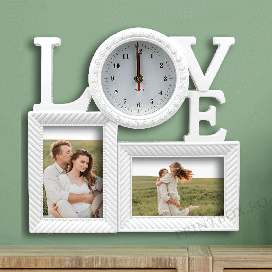 Ramă Foto Ceas personalizată cu 2 poze -Love