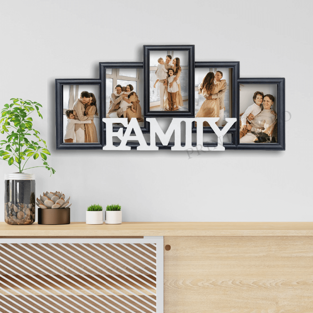 Tu cum îți păstrezi amintirile? Alege o Ramă Foto Family personalizată cu 5 poze și oferă un plus de personalitate căminului tău.