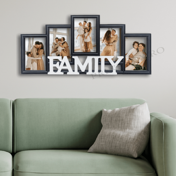 Rama Foto FAMILY poate fi personalizată cu 5 poze.