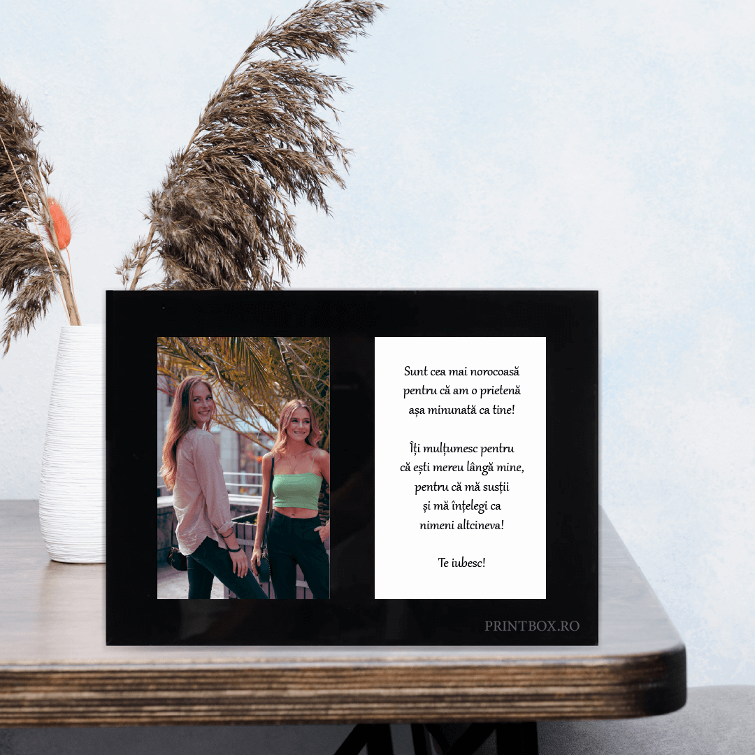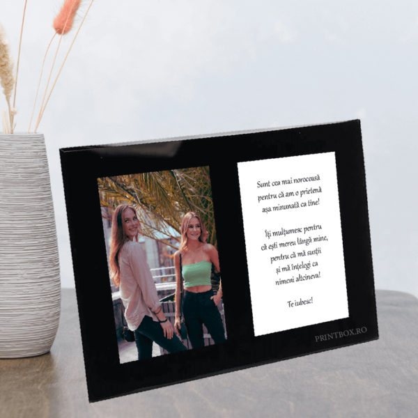 Ramă Foto Sticlă Dublă Neagră Personalizată cu poză și text
