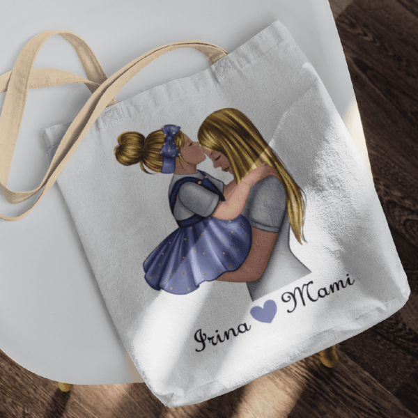 Sacoșă Canvas Personalizată cu nume - Mamă Fiică Model 1