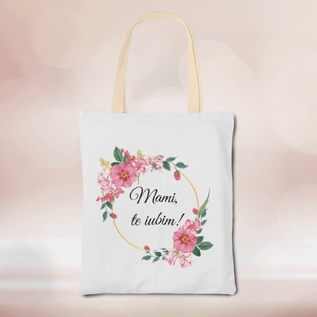 Sacoșă Canvas Personalizată cu text - Mami te iubim
