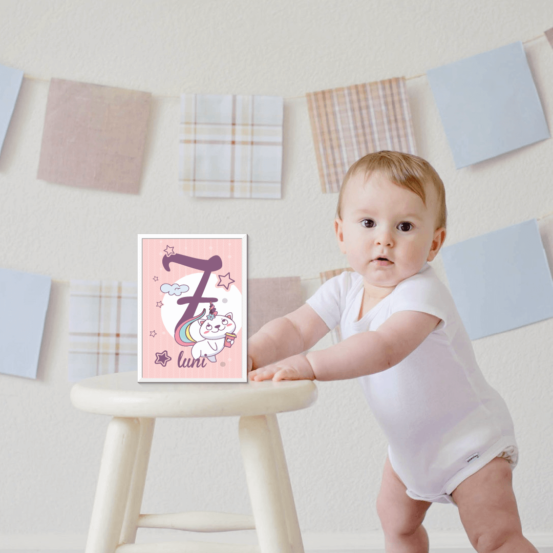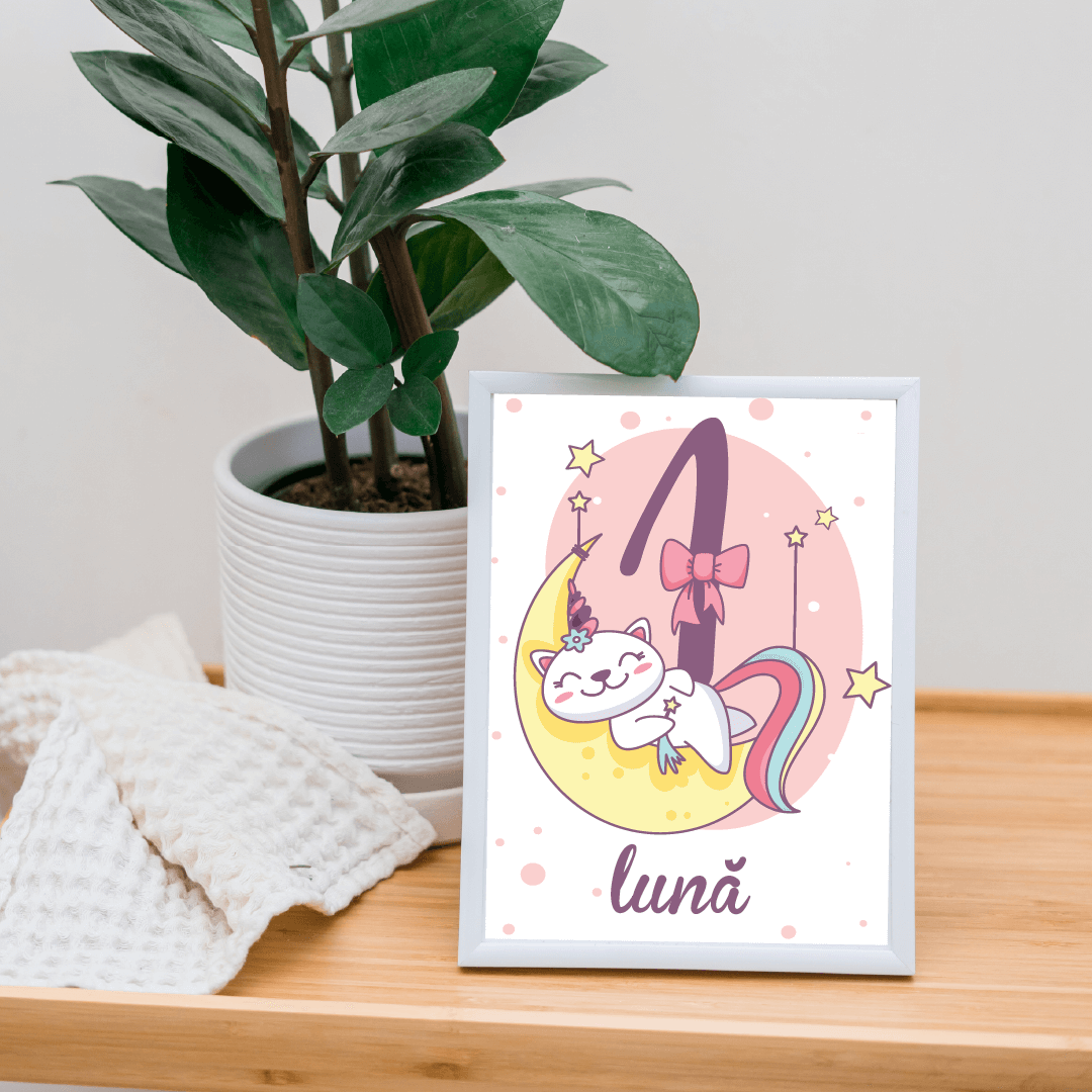 Set 12 Carduri Lunare Baby Personalizate + Ramă Foto – Kitty
