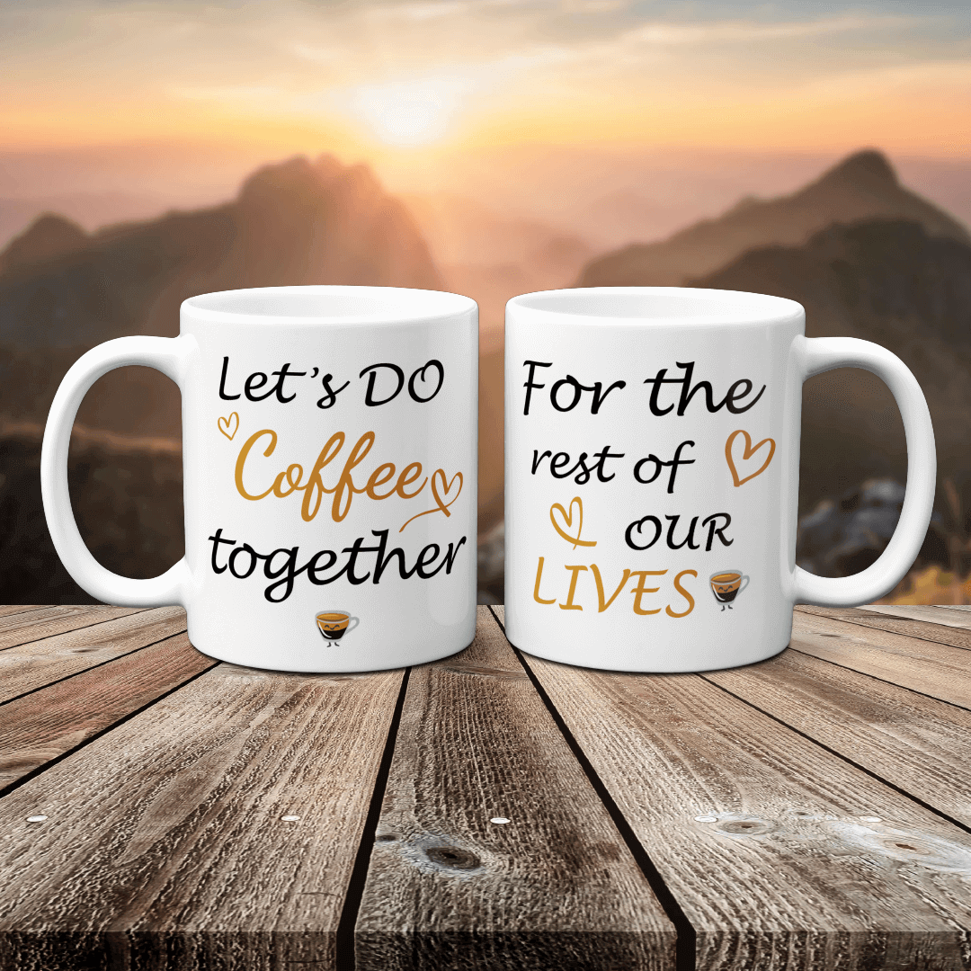 set de căni personalizate Coffee Together, care pot deveni o cerere în căsătorie inedită.