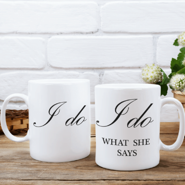 Set format din două căni pentru cuplu, design “I do”.
