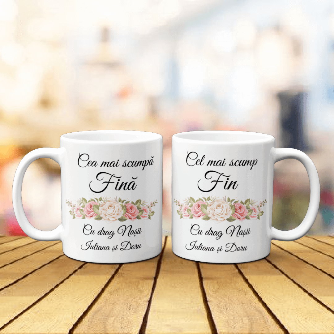 Cauți un cadou pentru Fini? Ai ajuns fix unde trebuie pentru că noi ți-am pregătit un set de două căni personalizate tematice, cu mesaje drăguțe pentru finii tăi. Partea bună este că pe cealaltă parte a cănilor poți adăuga câte o fotografie sau un mesaj.