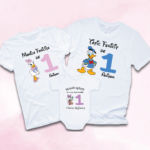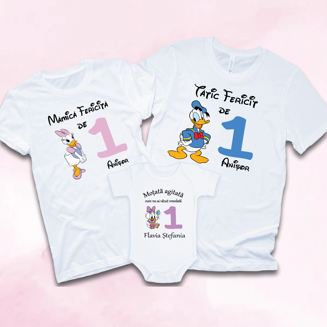 Alege și tu un Set Tricouri Personalizate pentru întreaga familie și creează cele mai frumoase amintiri sărbătorindu-ți micuța cu cea mai drăguță tematică Donald Duck.