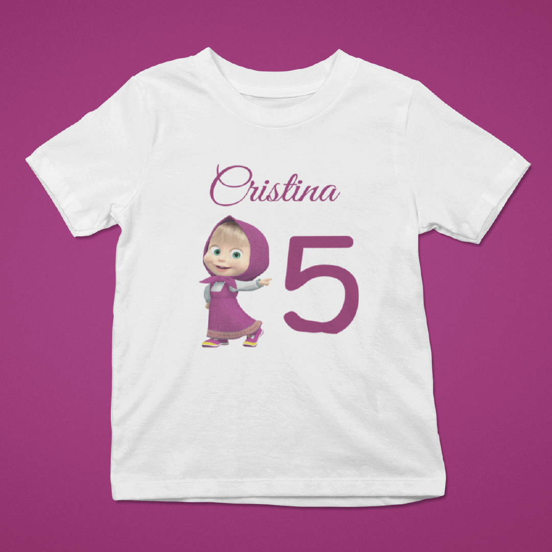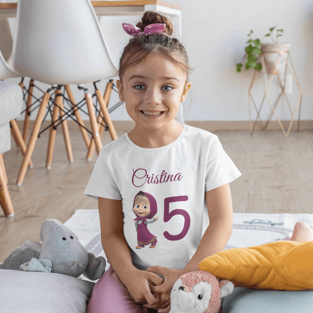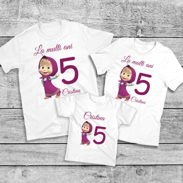 Purtați cu mândrie acest set 3 tricouri aniversare personalizate cu micuța eroină Masha și întoarceți toate privirile asupra voastră. Nu-i așa că este drăguț?