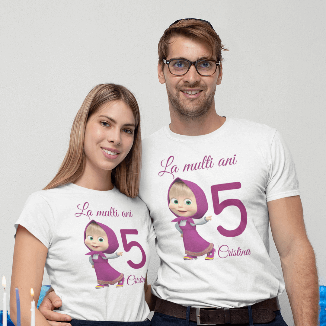 Alege și tu un Set 3 Tricouri Aniversare Personalizate – Masha pentru întreaga familie și creează cele mai frumoase amintiri.