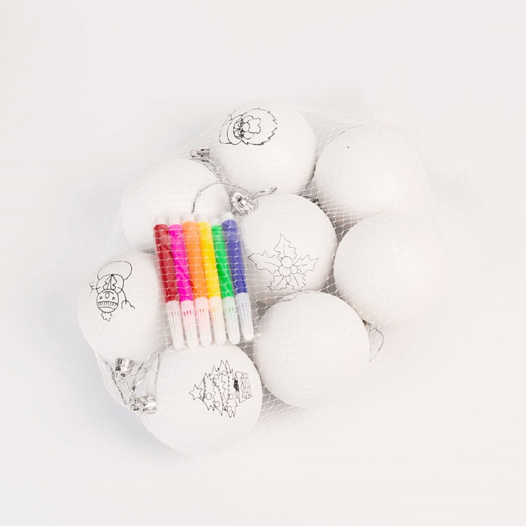 Set 8 Globuri de colorat pentru brad + Carioci Set 8 Globuri de colorat pentru brad + Carioci