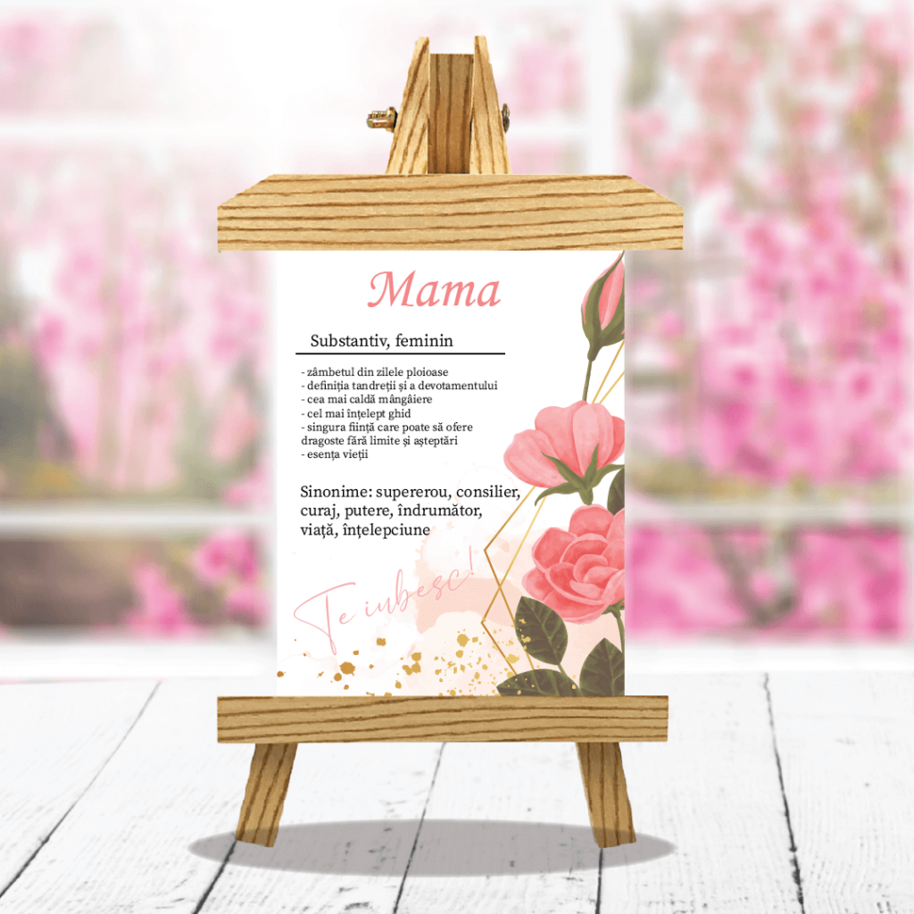 Cauți un cadou pentru mama? Ce poate fi mai frumos decât un Șevalet Personalizat cu un mesaj potrivit – definiția mamei.